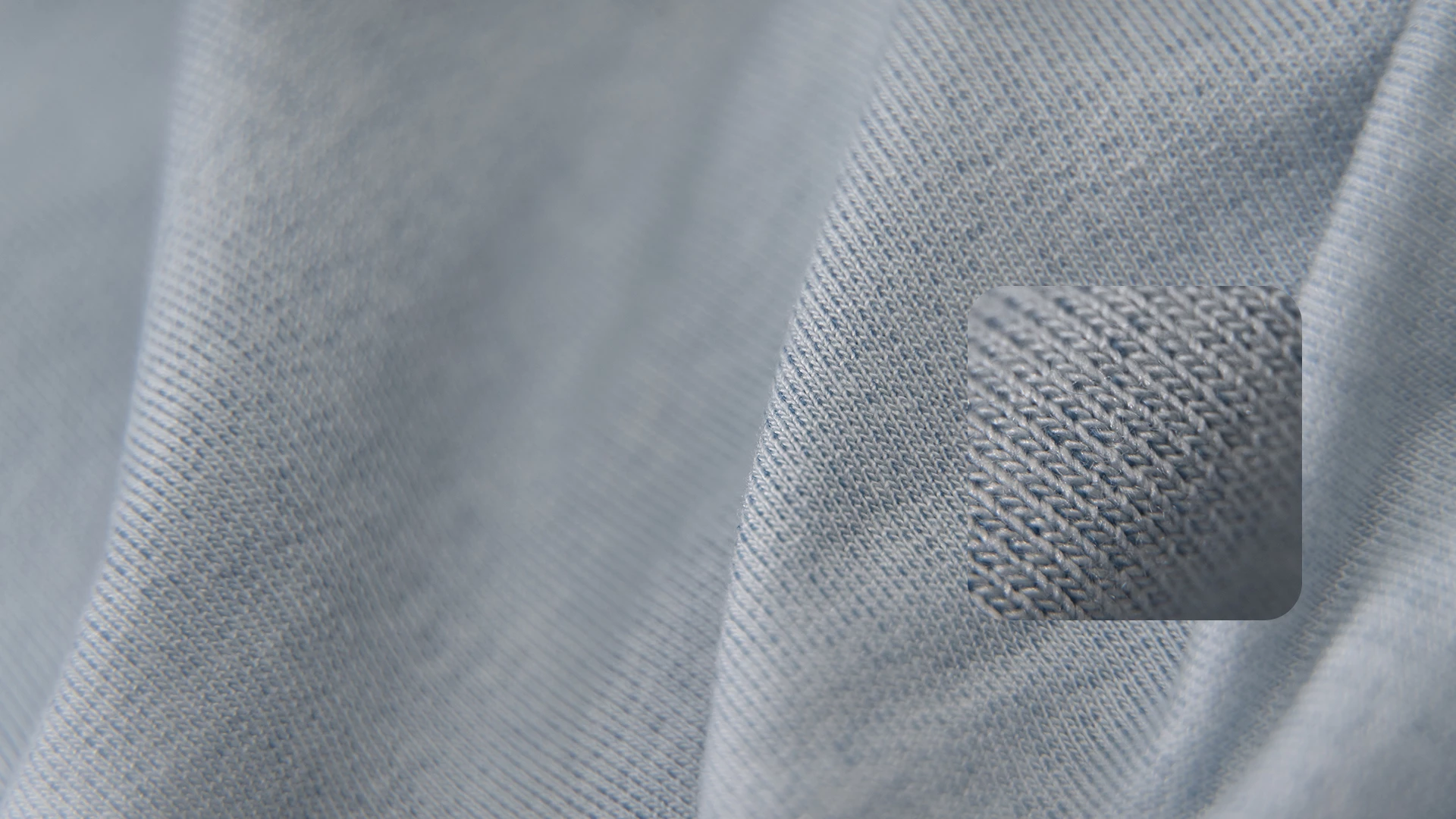 To successfully design a thick and comfortable T-shirt, we innovated with a unique double-sided construction.