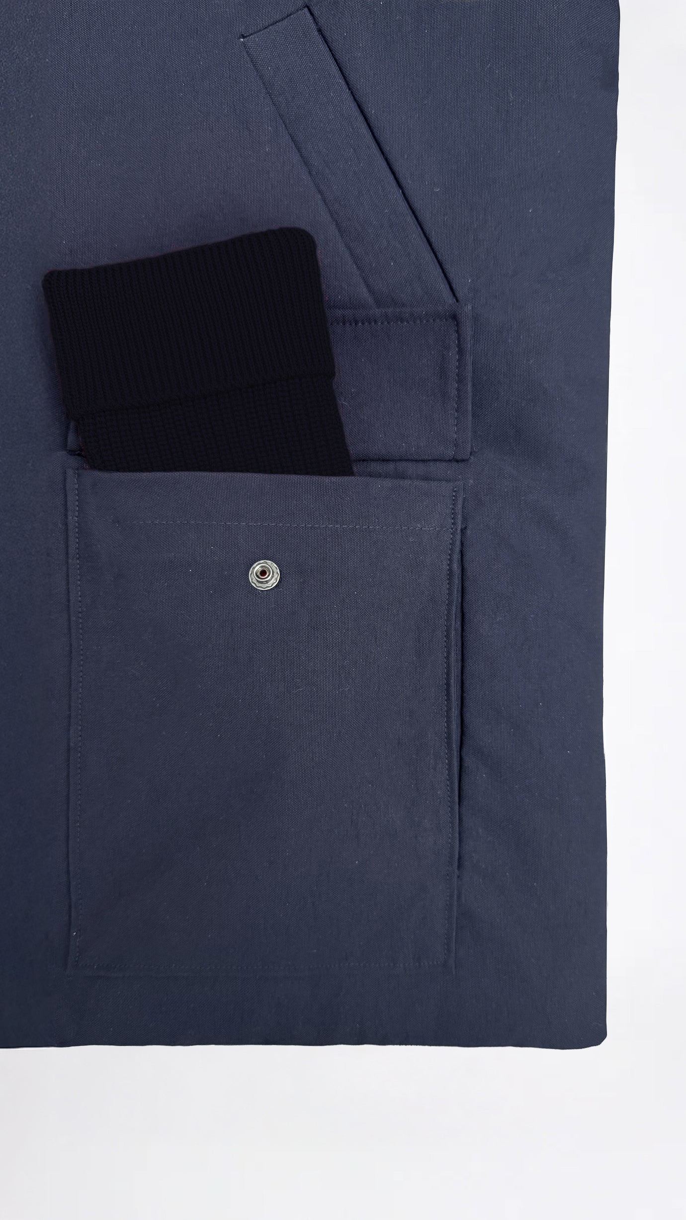 Ultra-warm and breathable short parka, constructed with three layers (technical canvas, merino wool insulation, breathable lining). A rugged urban armor for winter, combining performance and style.
