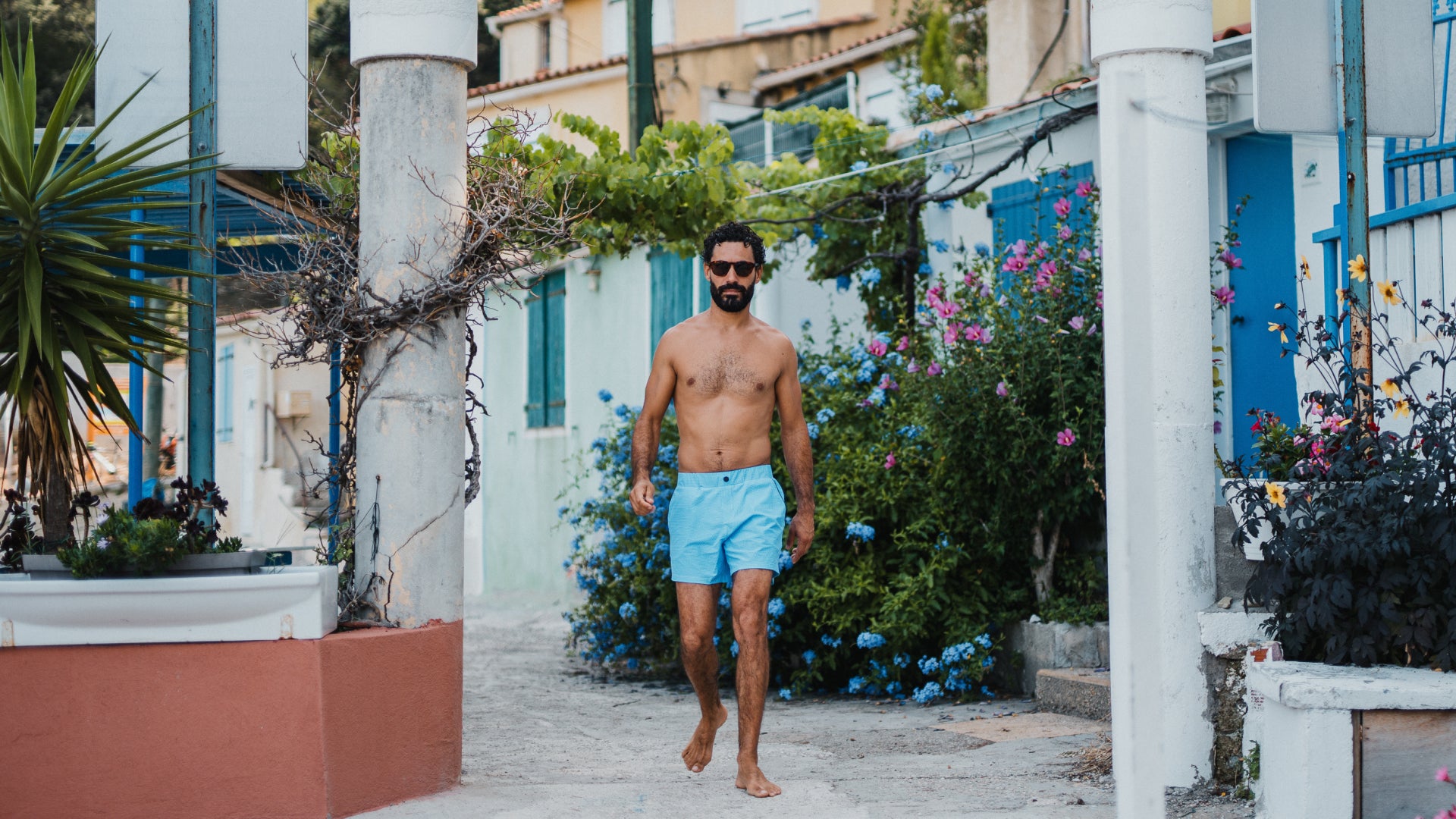 Instead of traditional swim shorts, which require a loose fit due to their inflexible fabric, these shorts offer a fitted silhouette while remaining extremely comfortable thanks to their stretchy technical material.