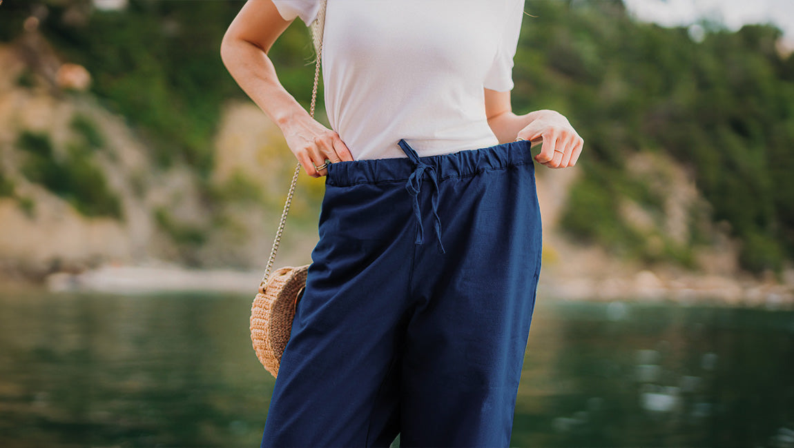 Un pantalon décontracté s'accompagne naturellement d'une ceinture élastique, parfaitement ajustable à votre silhouette.