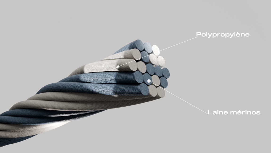 Le secret de ces chaussettes résident dans leur fil unique : un mélange de laine mérinos et de polypropylène, une fibre technique qui évacue rapidement l'humidité.