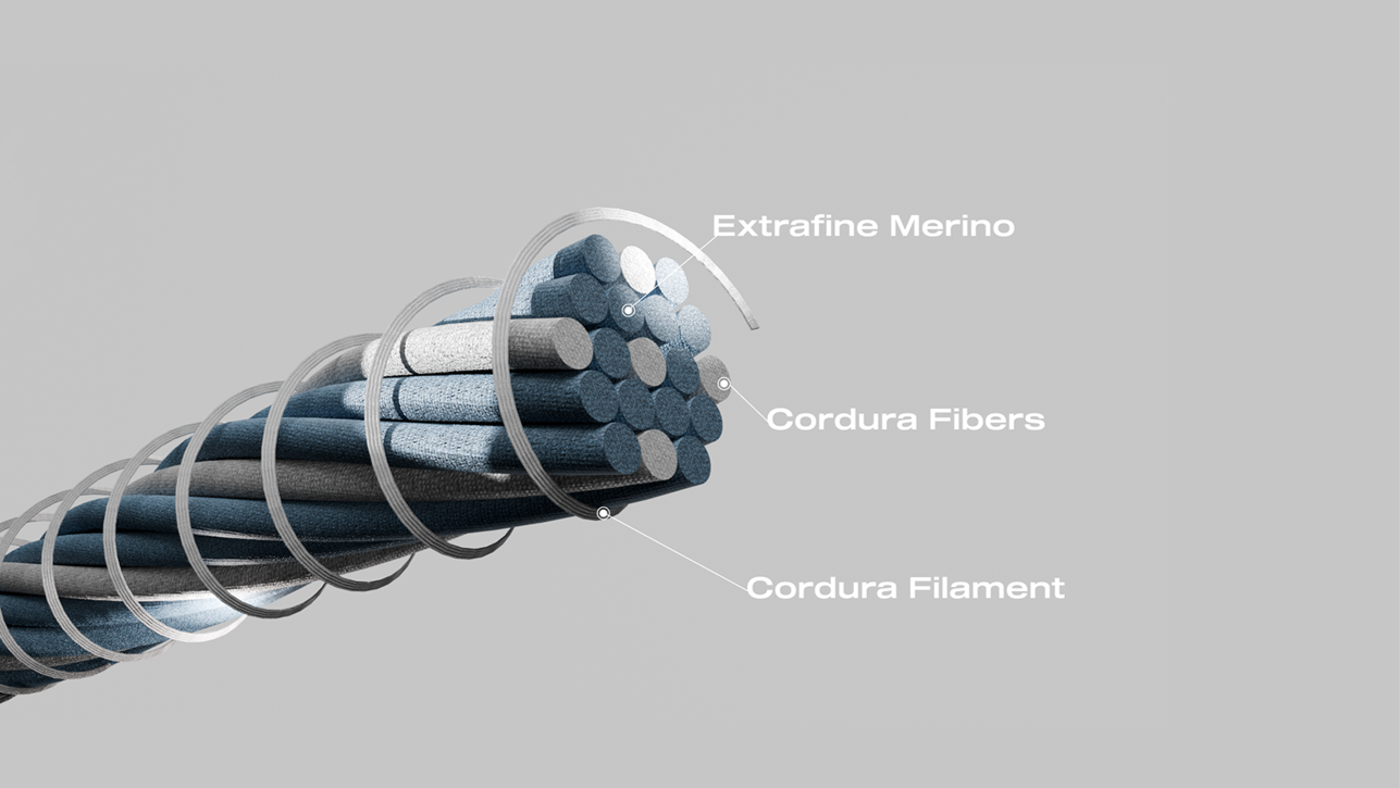 Grâce à cette technologie de pointe, la fibre de laine est enveloppée par le Cordura®, la rendant pratiquement indestructible.