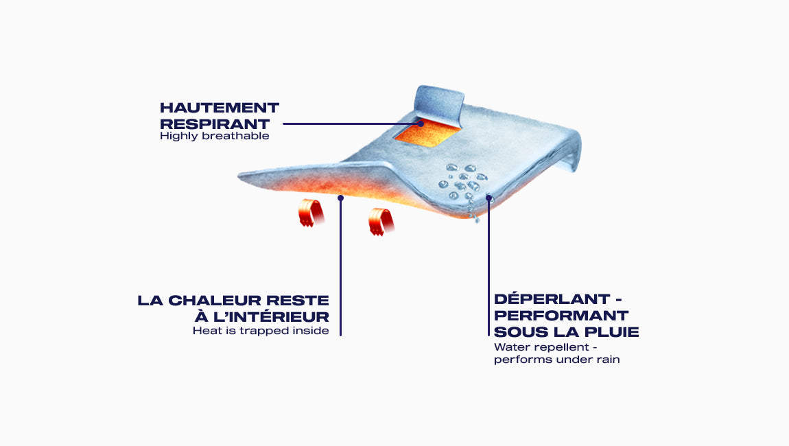 Résultat : vous restez toujours au sec, ni trop chaud, ni trop froid, avec cette sensation de confort absolu qui vous accompagne à chaque mouvement.