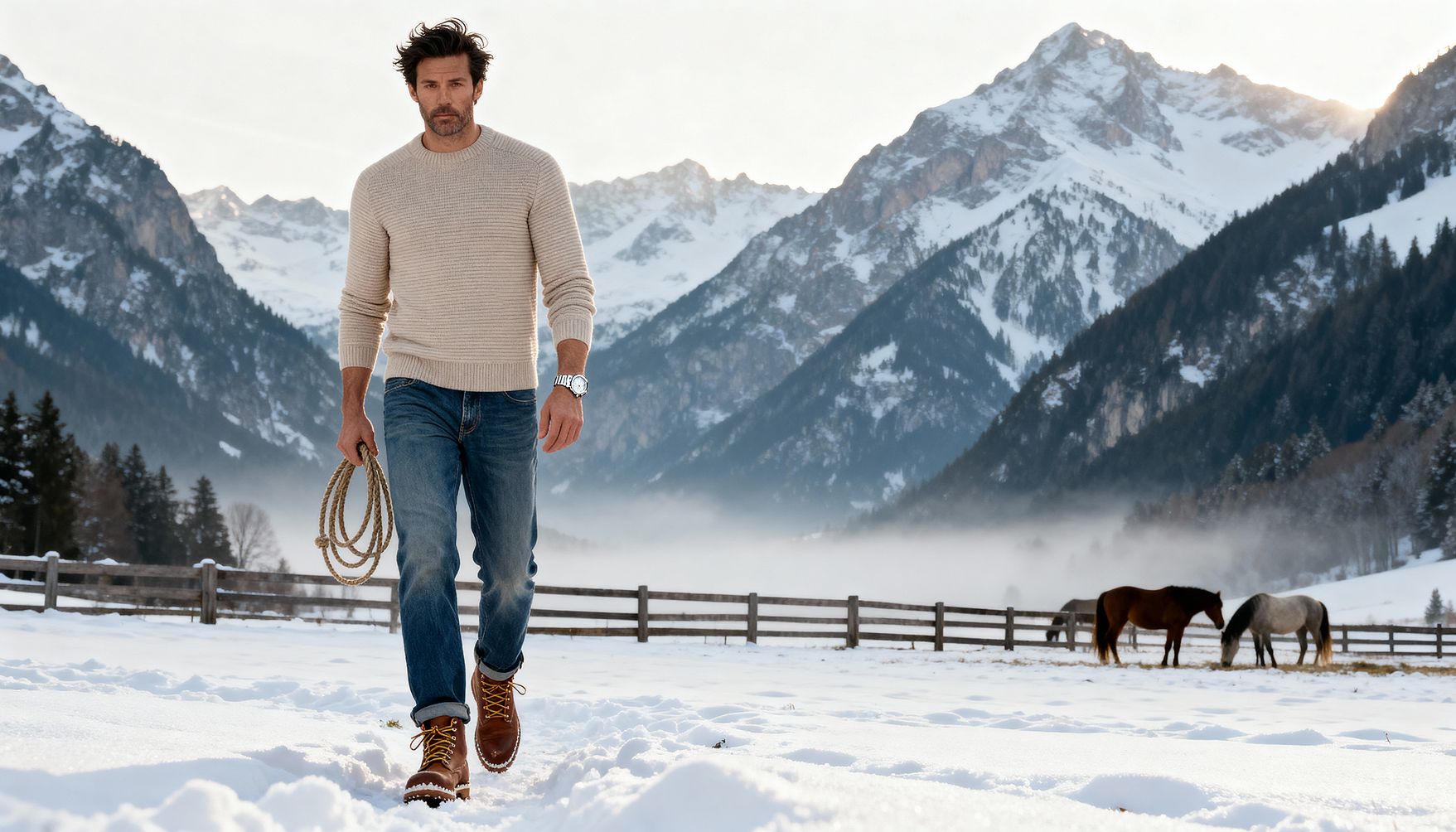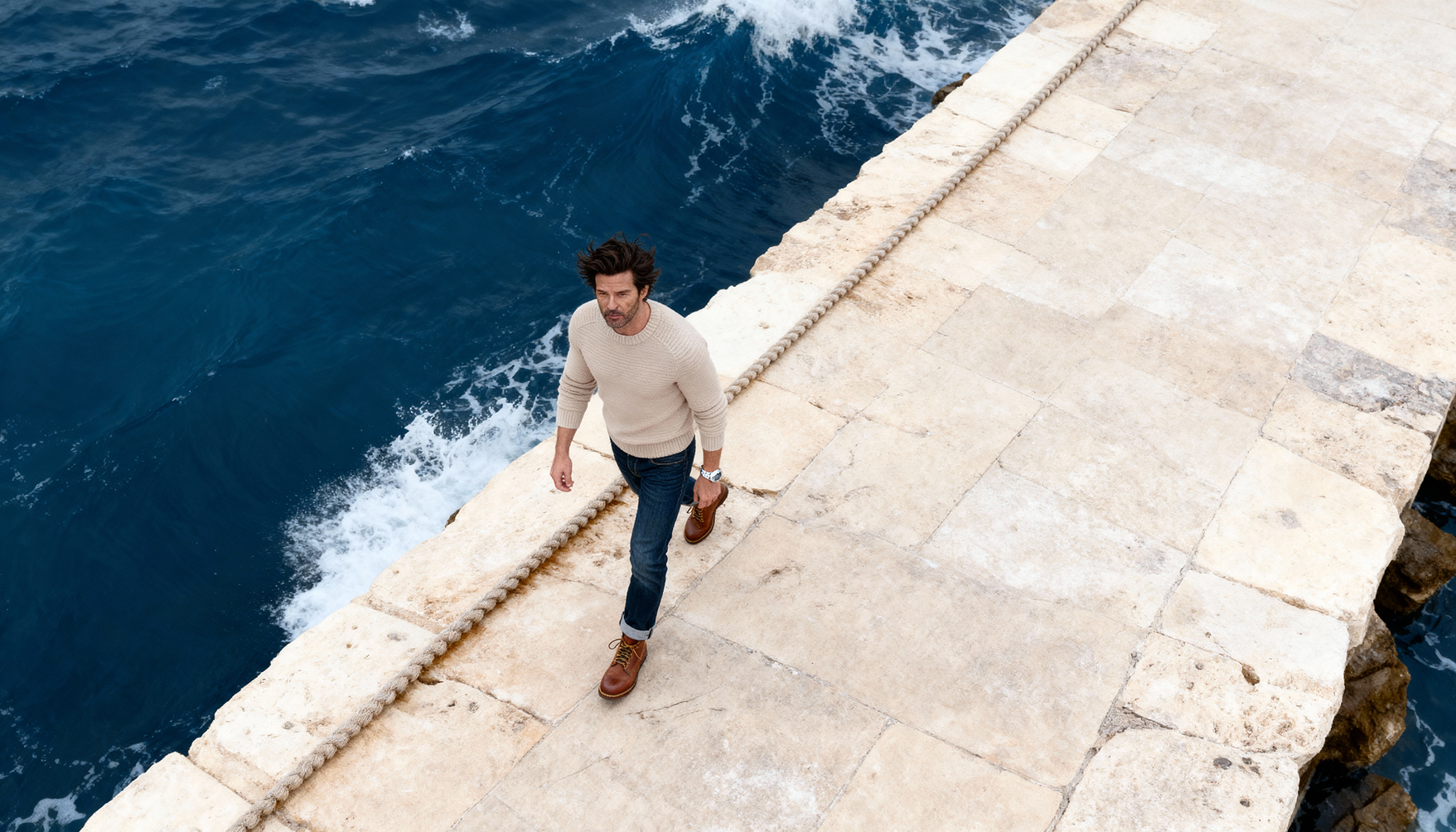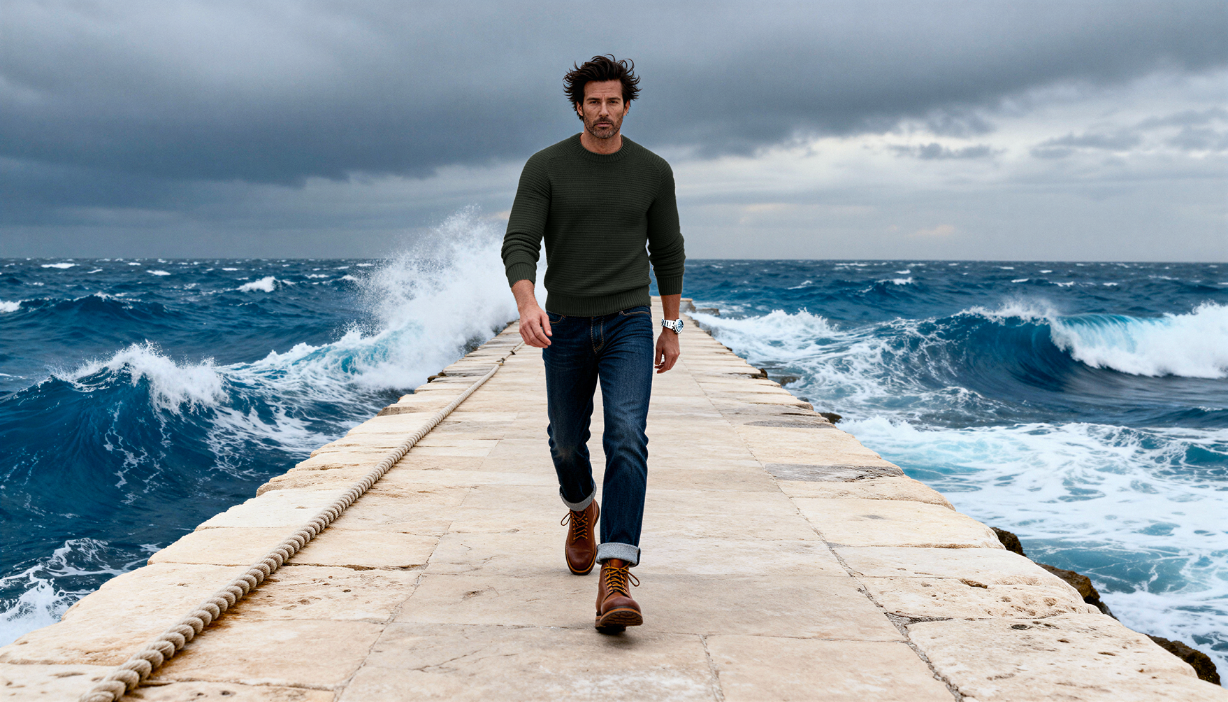Un vrai pull d’hiver, dense et chaud, tricoté dans une laine mérinos d’exception.