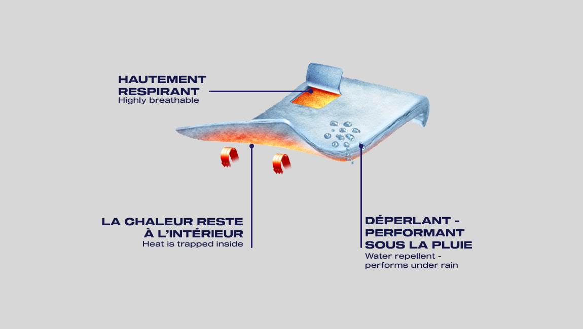 Inspirée des vêtements techniques, elle offre un rapport poids/chaleur inégalé, tout en restant respirante.