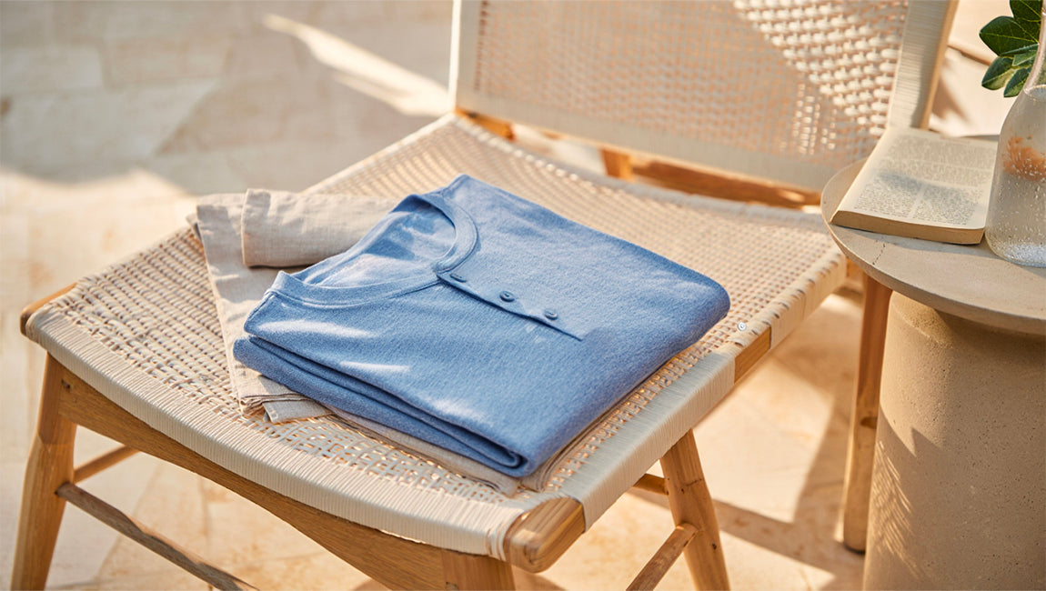 Le Henley donne à cette matière d’été une toute nouvelle allure : plus structurée, plus habillée, sans rien perdre de sa légèreté.