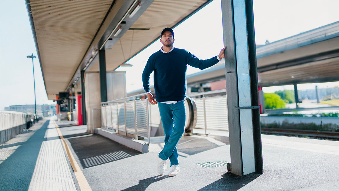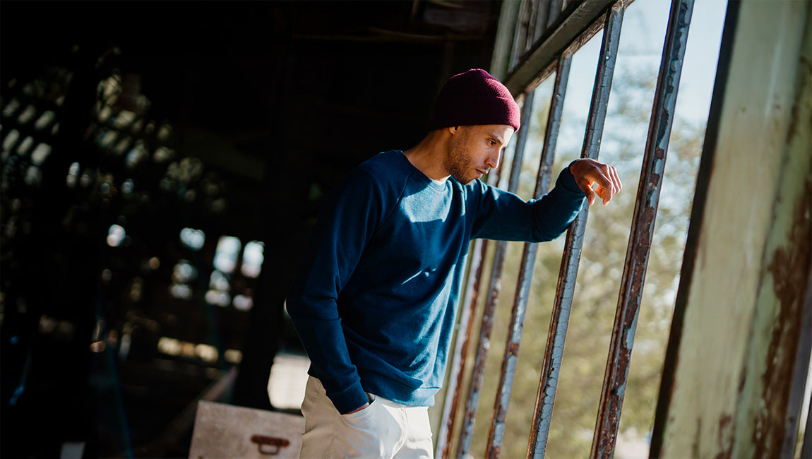 Pour ce modèle, on voulait aller plus loin avec une matière exclusive qui conserve la douceur et l’allure vintage du coton à l’extérieur, mais qui, côté peau, offre les performances incomparables de la laine mérinos extrafine.