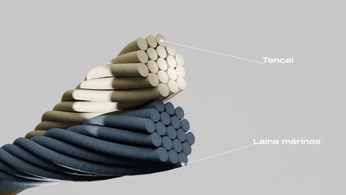 - 74% Tencel, 23% Laine Mérinos Extrafine, 3% Élasthanne