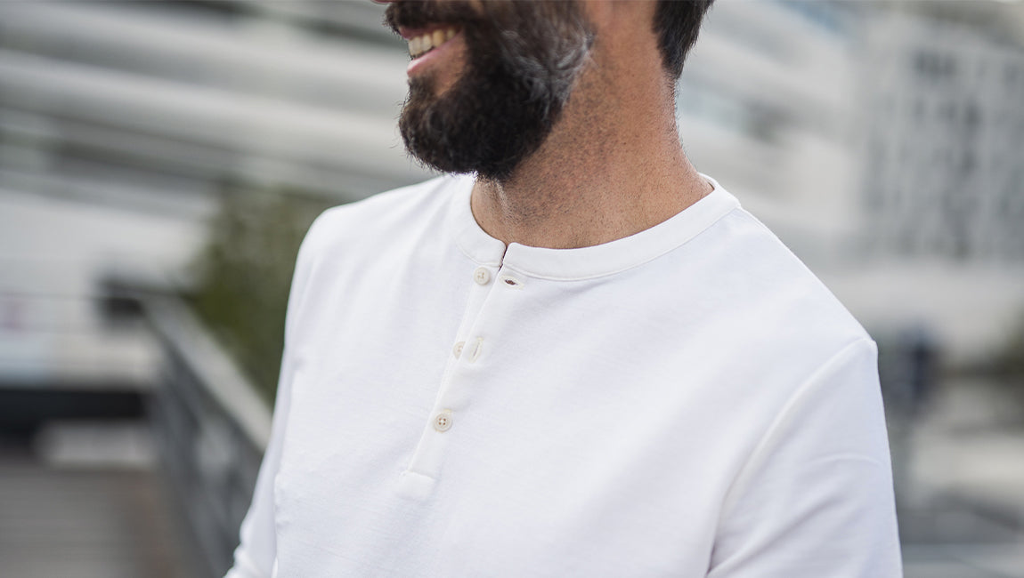 La face interne du henley est tricotée en fines bouclettes hyper douces de laine mérinos extrafine.
