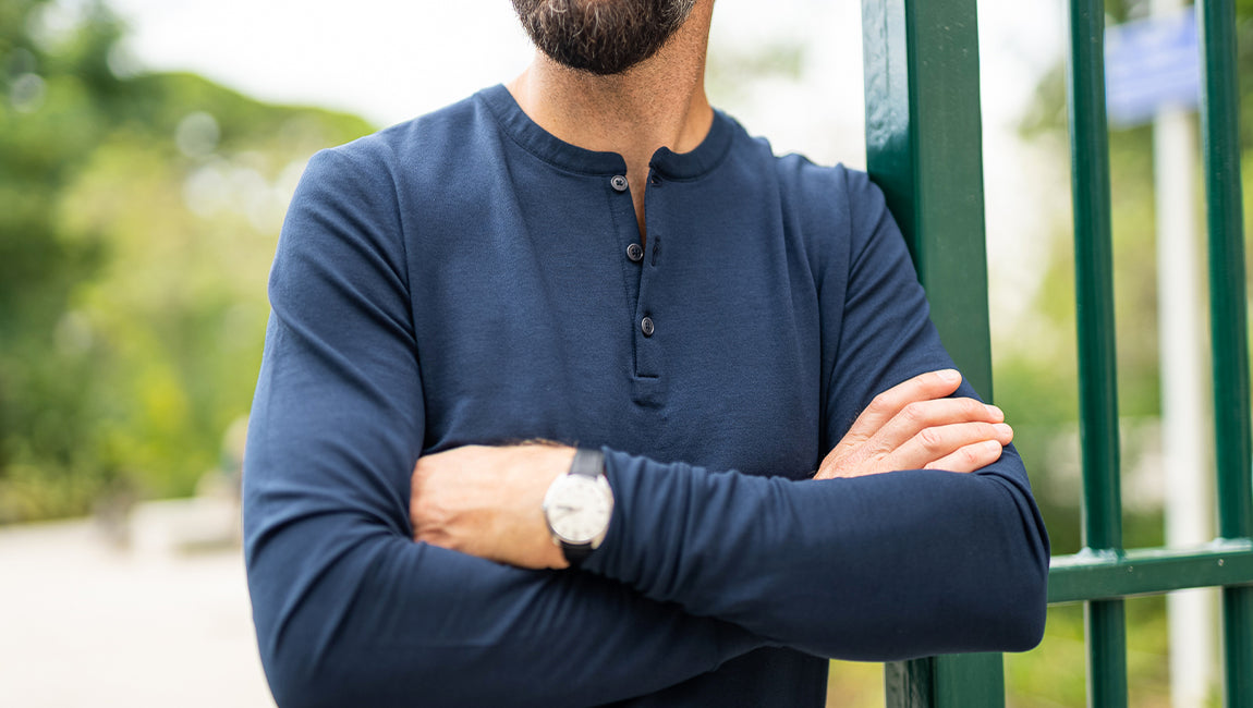 Ce tissu épais en fait un henley lourd et opaque avec de la structure et qui tombe parfaitement. Il ne bougera pas au lavage et vous durera des années.