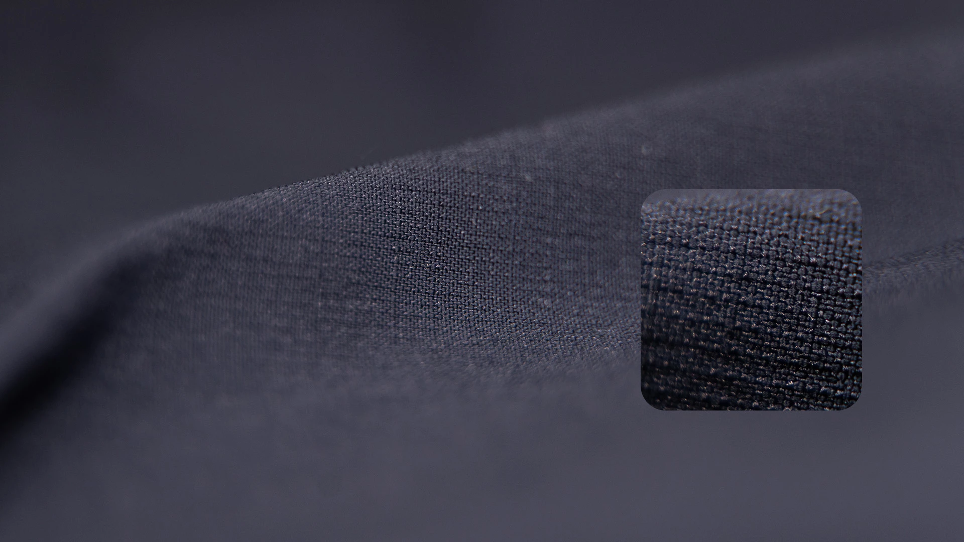 Nous avons choisi une toile technique stretch légère et confortable tissée par notre partenaire Sofileta à Bourgoin-Jailleu.