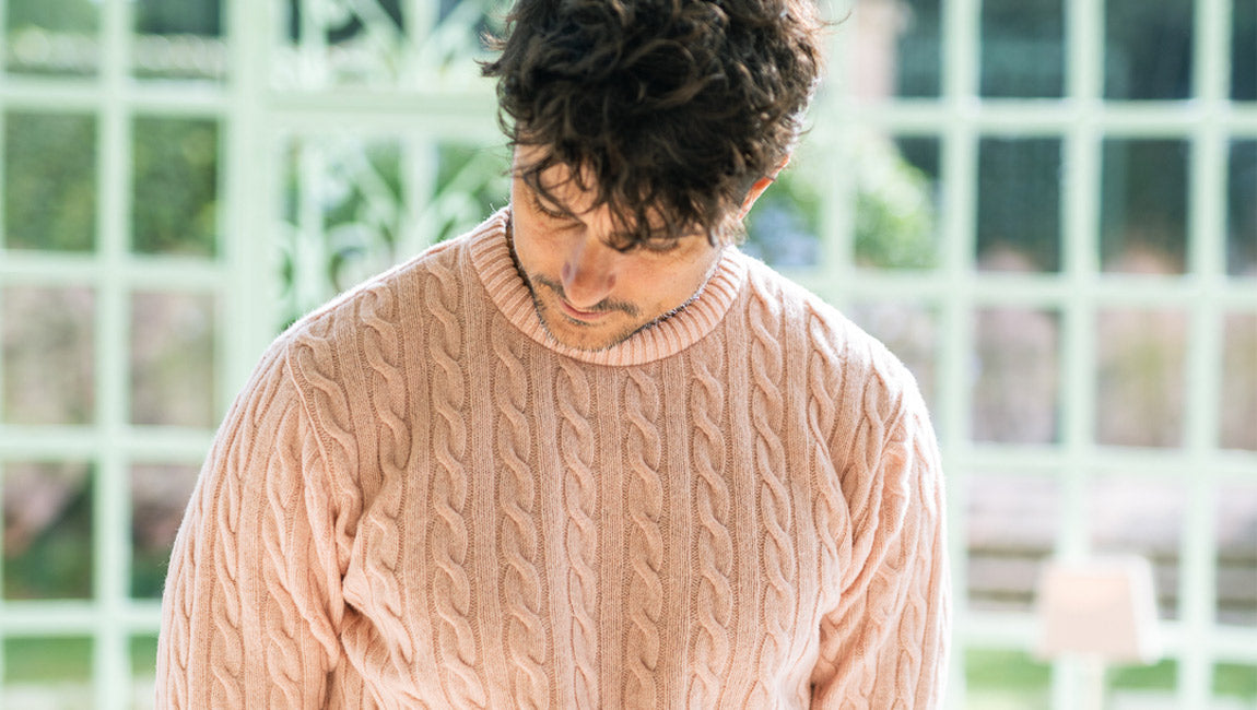 Notre pullover torsadé est tricoté avec un chic col rond pour une finition masculine.