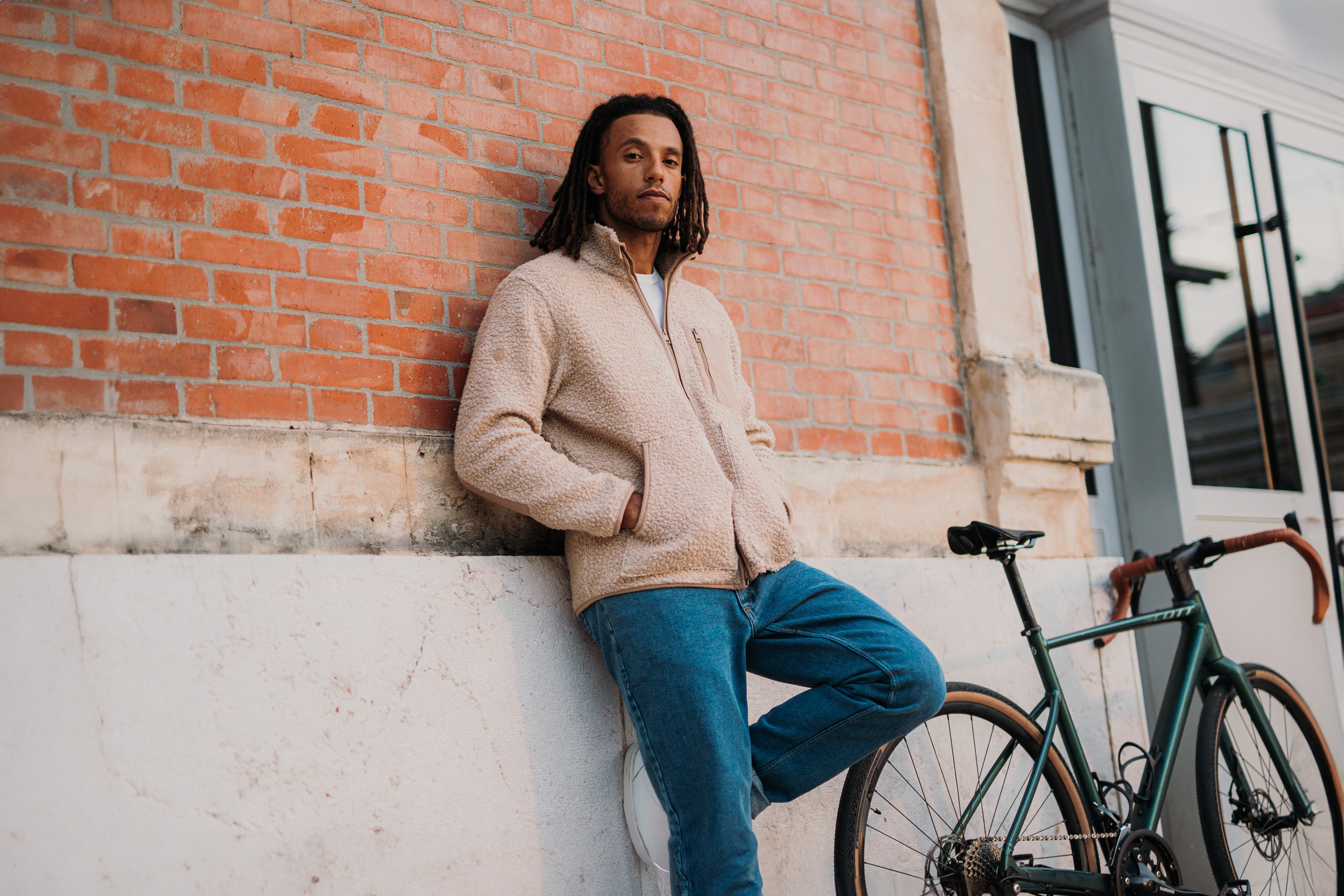Nous avons construit avec une veste polaire chaude, légère et pratique avec un col montant, des poches avant profondes, un zip double curseur et un look urbain très facile à porter.