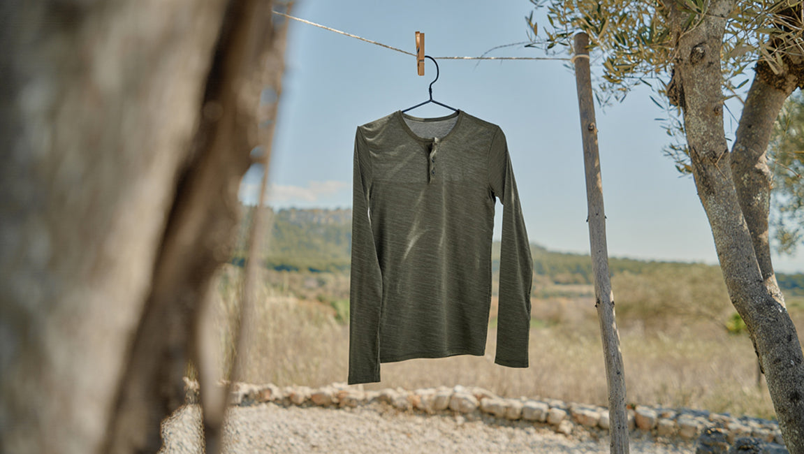 Grâce aux propriétés anti-odeurs exceptionnelles de notre laine mérinos, ce Henley reste frais — même après plusieurs jours.