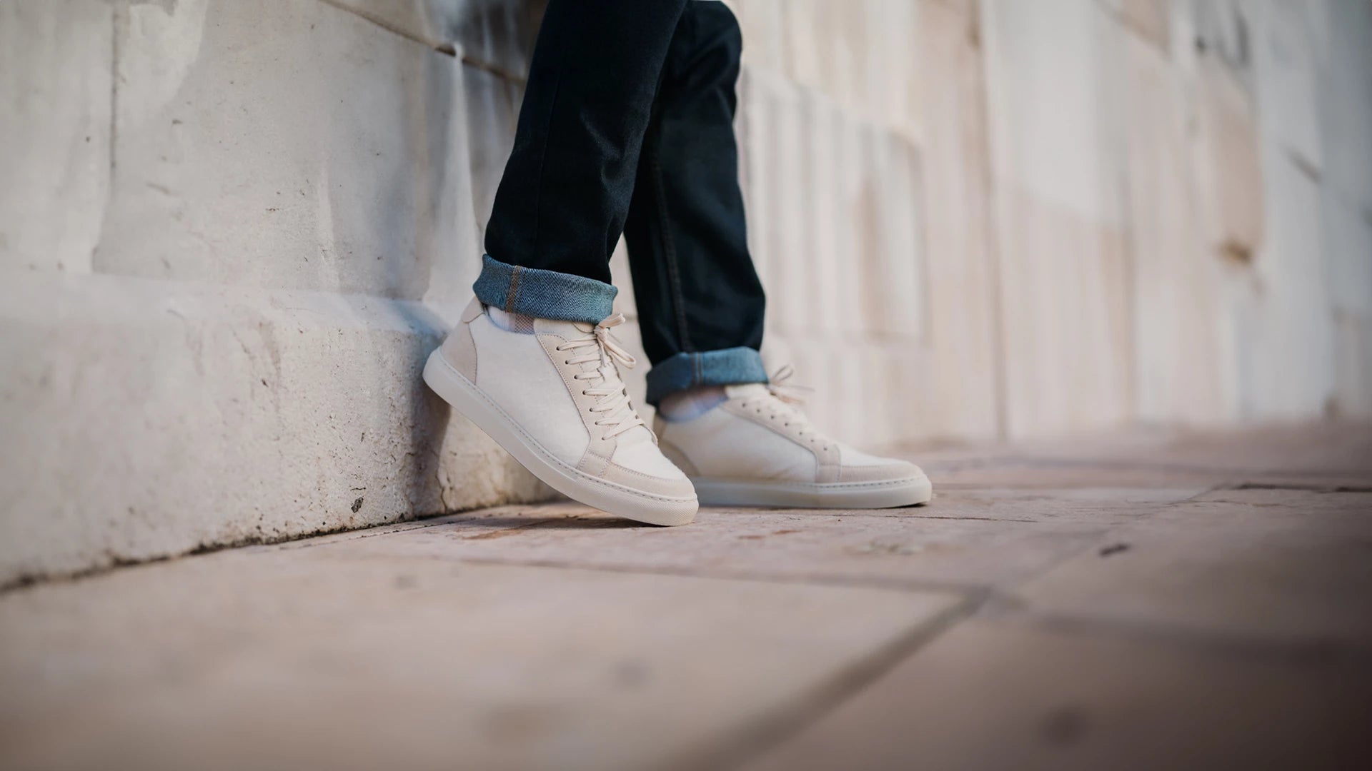 Cette sneaker est le résultat d’une étroite collaboration avec un atelier italien haut de gamme de fabrication de chaussures et le concepteur de tissu innovants italien Reda.