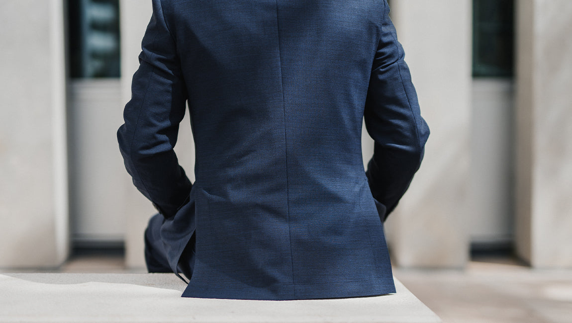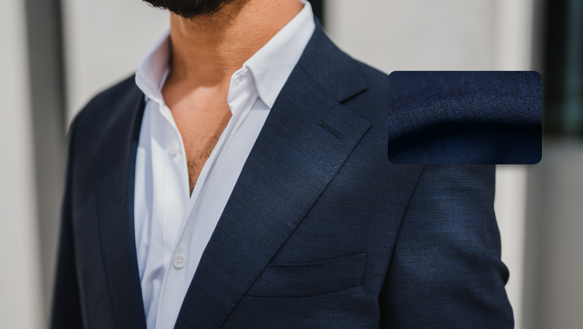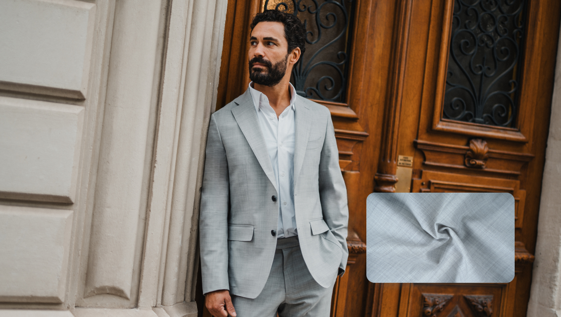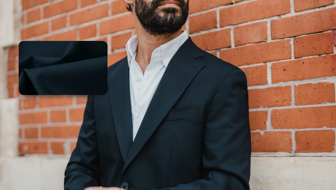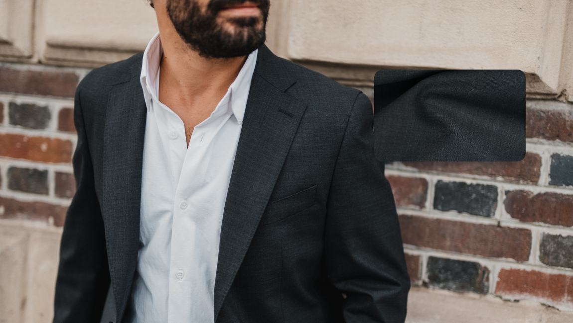 Nous avons développé un tissu technique exclusif avec notre partenaire italien Miroglio, spécialiste des lainages haut de gamme pour costumes, pour concevoir une toile avec l'aspect d'un lainage mais la performance et l'extensibilité d'un tissu de sport.