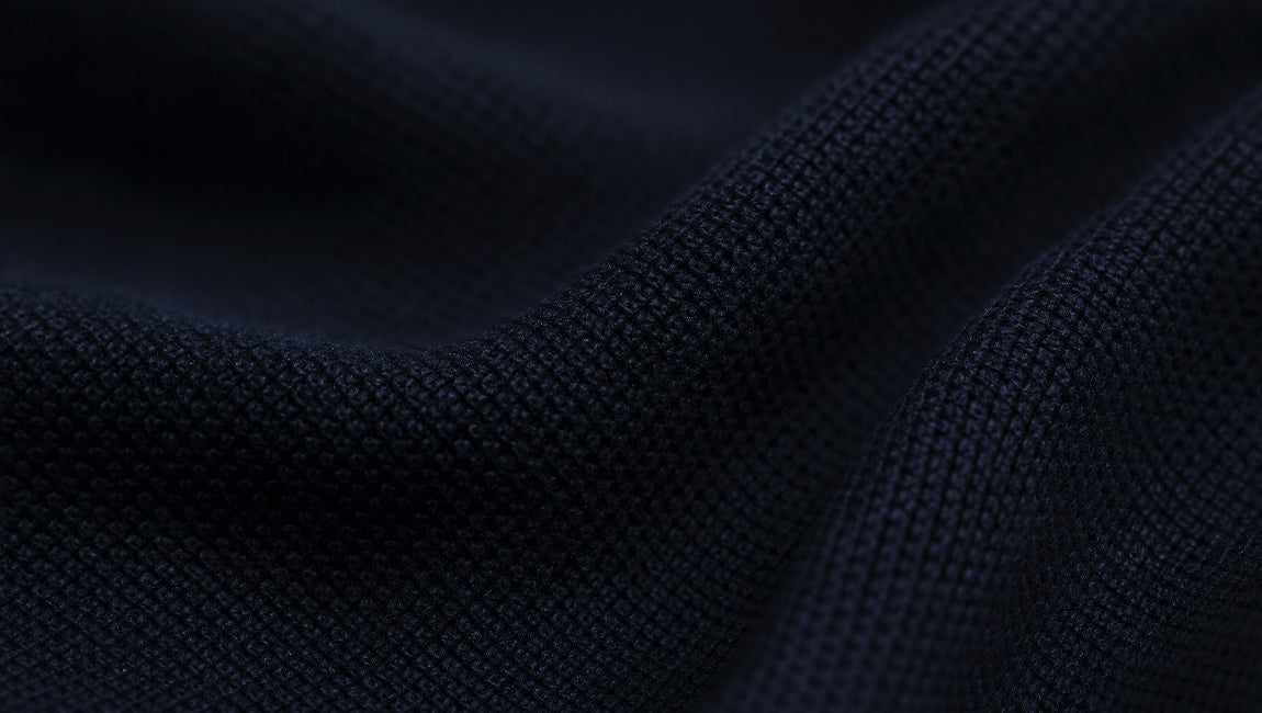 Nous avons choisi la fibre extrême : 17,2 microns, fil italien longue fibre, filé compact 2-ply, tricoté en Full Milano.