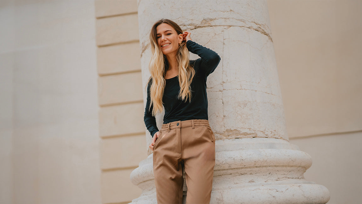 Cette matière vous caresse la peau grâce à son mélange de laine extrafine douce et de bois frais et soyeux.