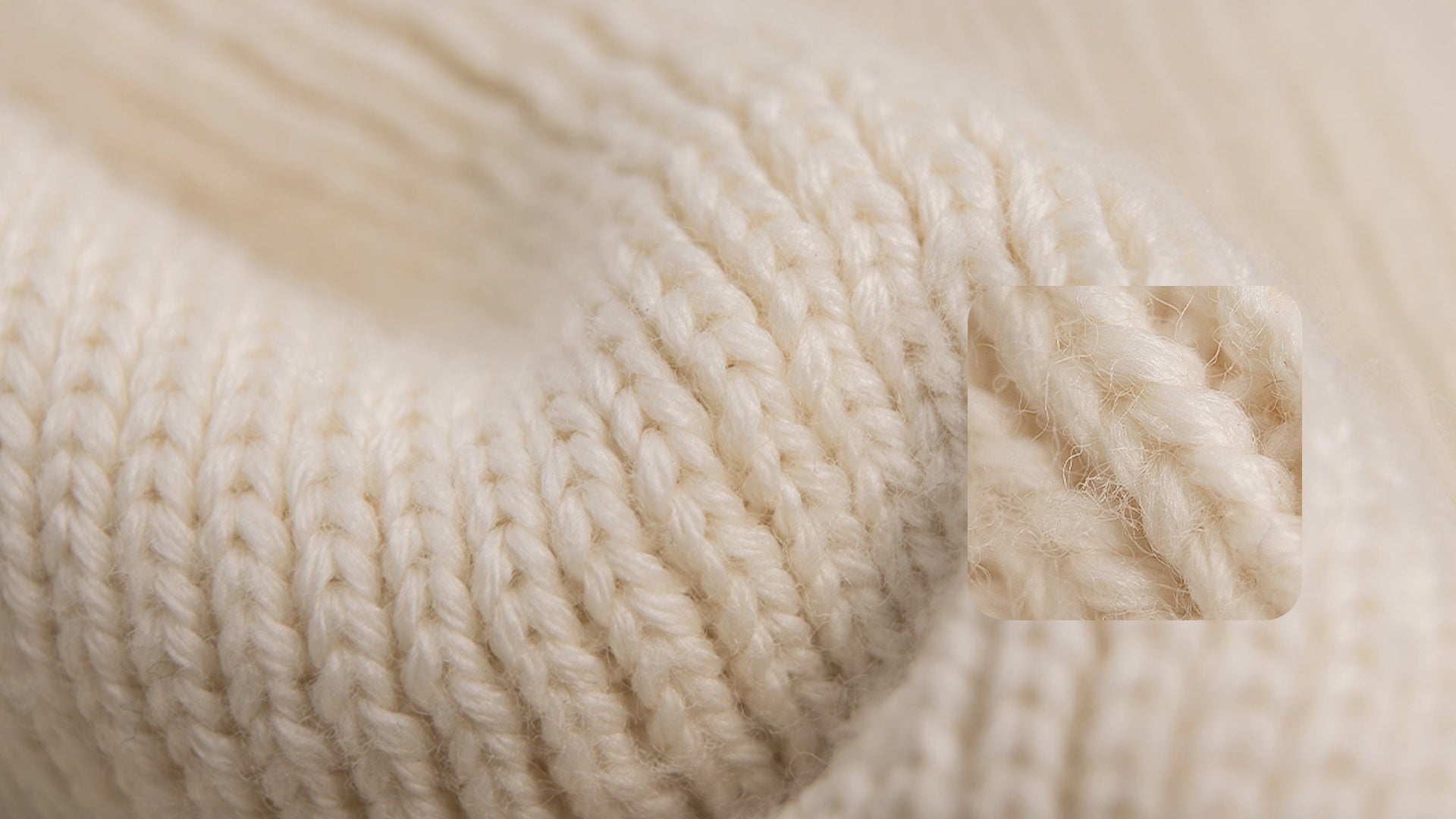 Nous avons choisi un point de tricot en côtes serrées pour emprisonner l’air au maximum et ainsi garantir une isolation optimale.